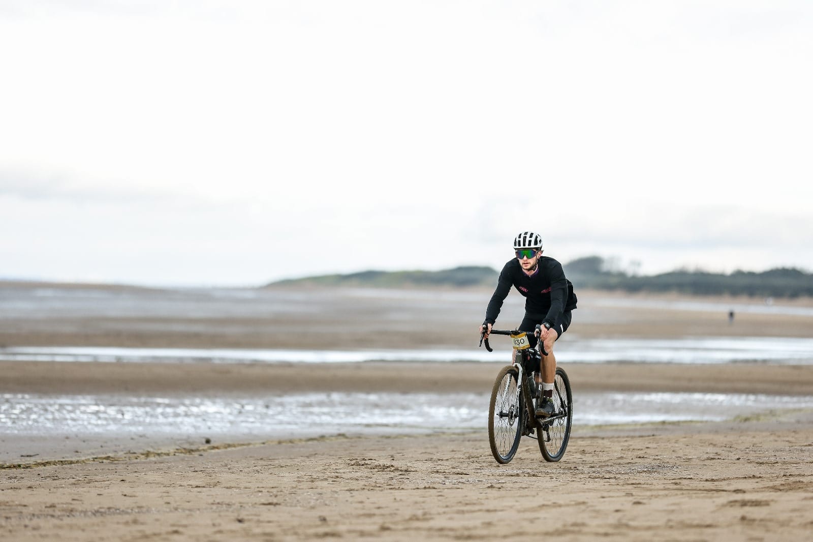 Very much weather dependent. There is more tarmac than normal on this route but the gravel (hard packed mud) is fast flowing when dry and soft and slippy when wet. The beach is mostly firm but the optimal line isn’t too easy to stick to.